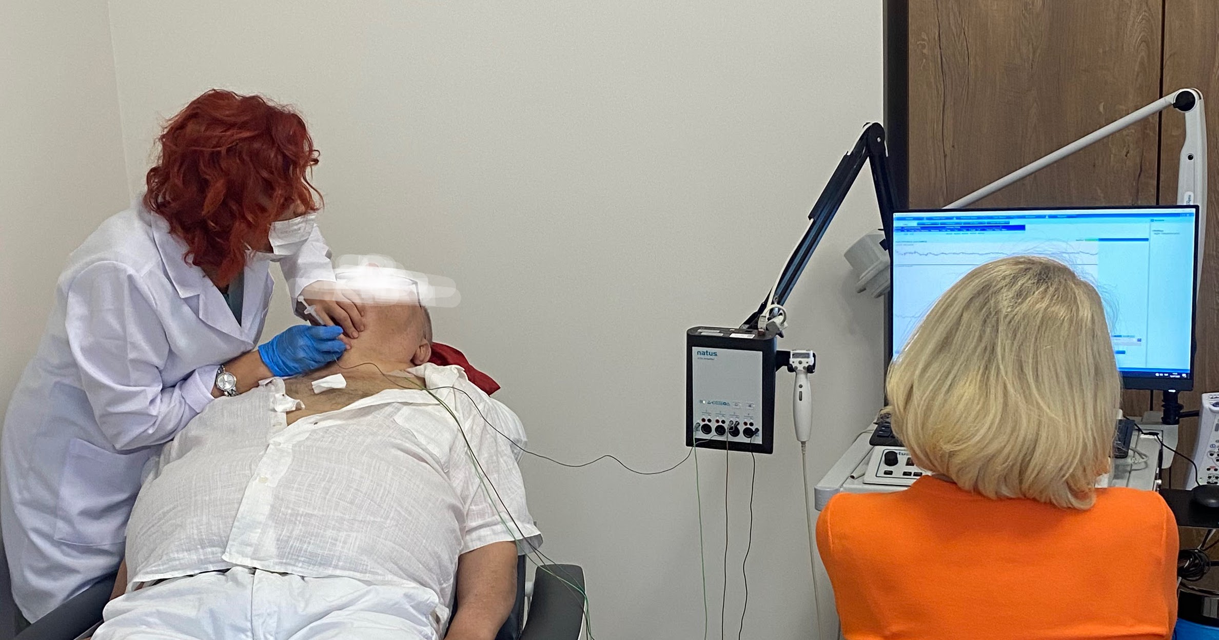 Vocal cord EMG is a short procedure performed in the outpatient clinic with local anesthesia while the patient is awake. It is not a painful procedure. Fine, small needle electrodes are sequentially inserted into the muscles through the neck. To evaluate muscle activity, the patient is asked to perform maneuvers during EMG, such as swallowing, straining, or producing the vowel 'i'.