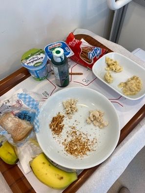 - While the patient swallows foods and liquids of different consistencies (puree, liquid, solid), it is assessed whether food gets stuck in the pharynx, and whether penetration (entry into the upper laryngeal area) or aspiration (entry below the vocal cords) occurs.